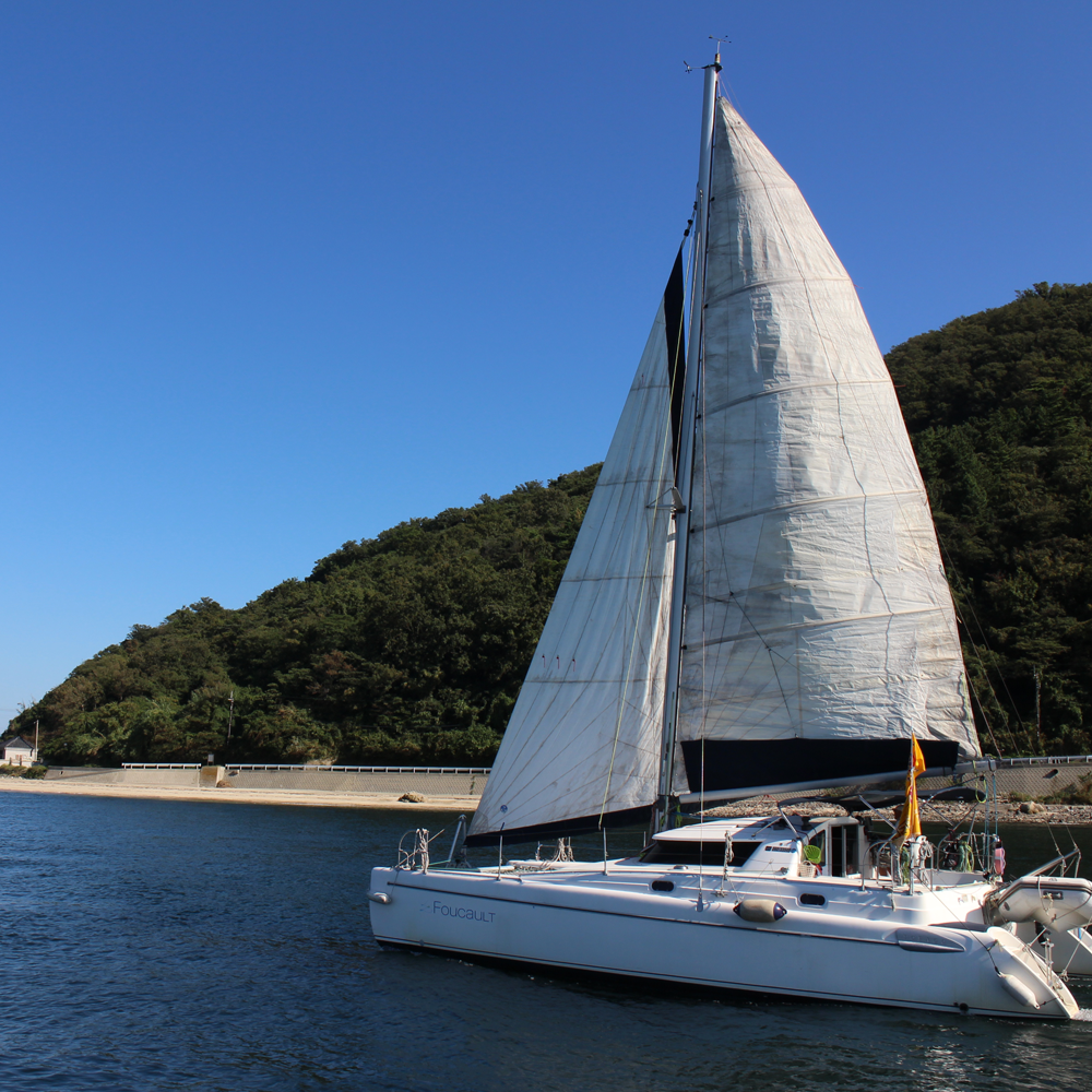 View the sunset on a two hour cruise on the quiet waters of the Seto Inland Sea aboard a catamaran, a type of boat with a deck connecting two parallel hulls in order to reduce rocking. On the cruise, you can fully enjoy the sense of liberation and a break from everyday life.