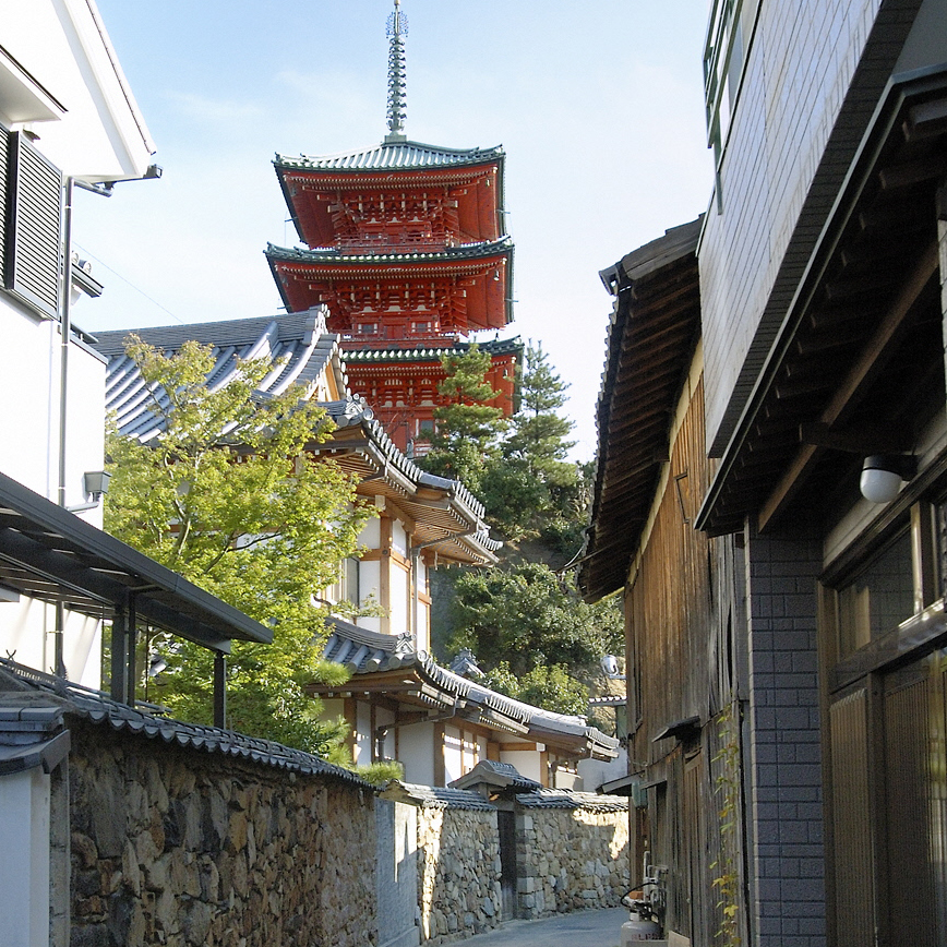 The small inn is tucked away in the “Hishio no Sato” (Soy Sauce Village) area of Shodoshima, where many there are many traditional soy sauce factories. There are seven individual rooms, each with their own unique qualities. The inn’s restaurant “Omoya” is located in a renovated old traditional house designated as a Cultural Property, giving one a sense of nostalgia.
