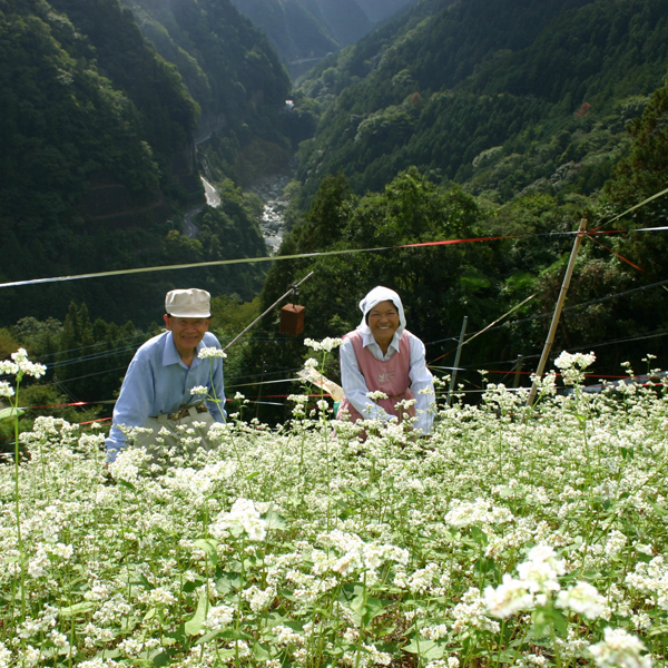 | Sarukai Village is located on a steep slope where yuzu and vegetables are grown. Every year in early October, the steep slope is covered with white soba flowers which attract many visitors. |