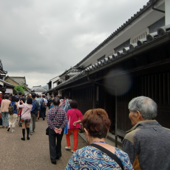 | Along the historical streets of Waki Town (dating from the Edo period, 1600-1868) can been seen Udatsu, or high-winged walls that break the continuous roofline. These extra dividers at the edges of the houses,made from clay-rich earth, were designed in part to prevent the spreading of fires. Waki Town was an indigo dyeing center and home to many wealthy merchants, and rows of fine houses with classic tile roofs and storehouses have been preserved. To protect the architectural character, the national government has designated this district as an important preservation district for groups of historic buildings. |