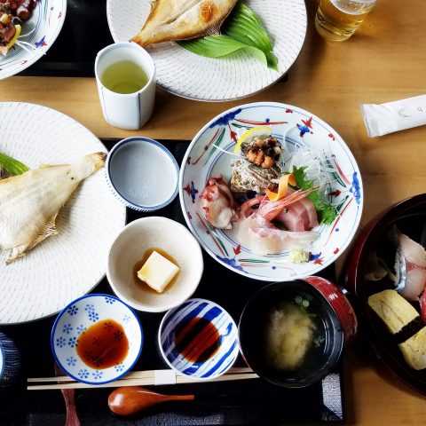 | The restaurant deal fresh sea foods and vegetables and homemade dried fish and local sake. You can enjoy the lunch in the spacious mood in Ine. |
